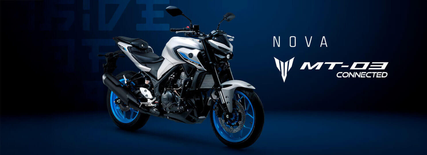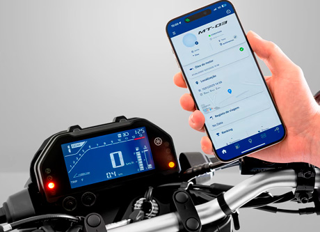 Equipada com novo painel totalmente digital estilo blackout, tomada USB-A e conectividade Y-Connect , a nova MT-03 coloca tecnologia e desempenho na palma da sua mão, permitindo gerenciar o uso e a performance da moto, programar manutenções, comparar modos de pilotagem, localizar onde a moto foi estacionada e até compartilhar as rotas mais emocionantes diretamente nas redes sociais.
