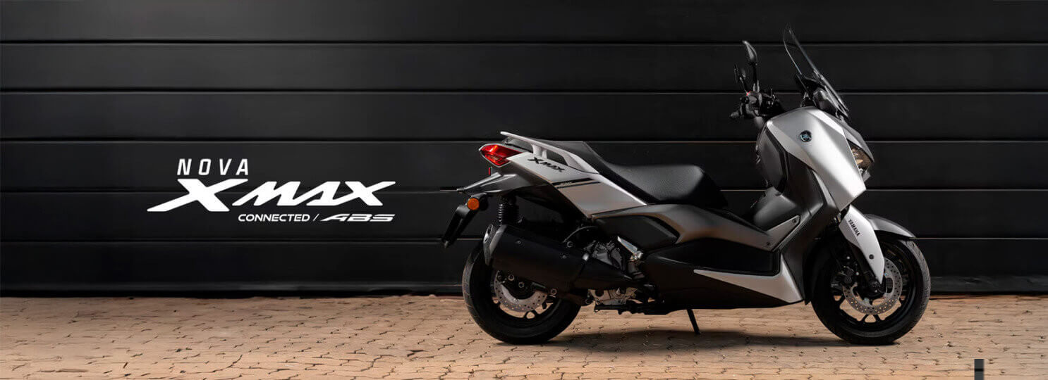A nova Yamaha XMAX ABS Connected une sofisticação e tecnologia, com faróis em LED em formato de "X" e conectividade Bluetooth via Y-Connect, permitindo monitorar dados da moto e receber notificações no painel. Destaca-se pelo visual marcante, inovação e economia.